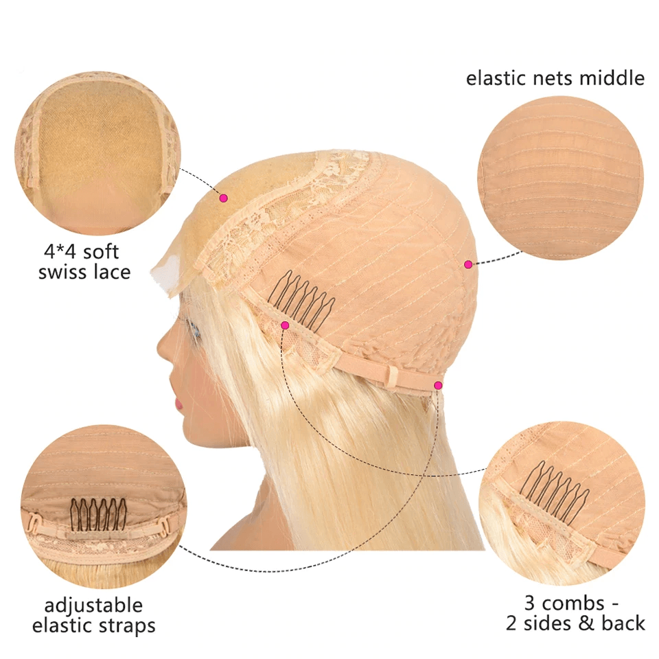 Ombre Blonde Colorful Wig Human Hair Middle Part Bob Wig T4/613 | Straight