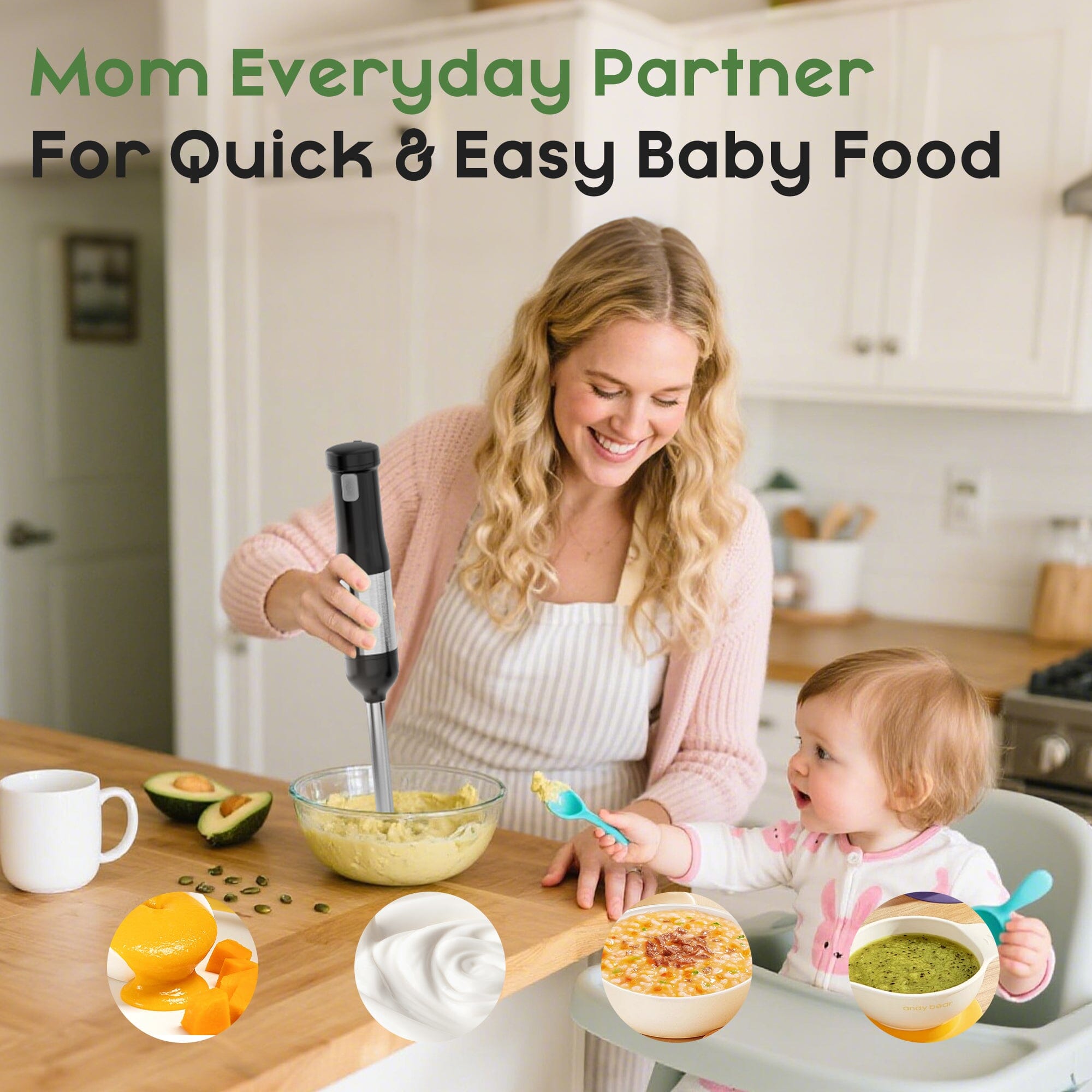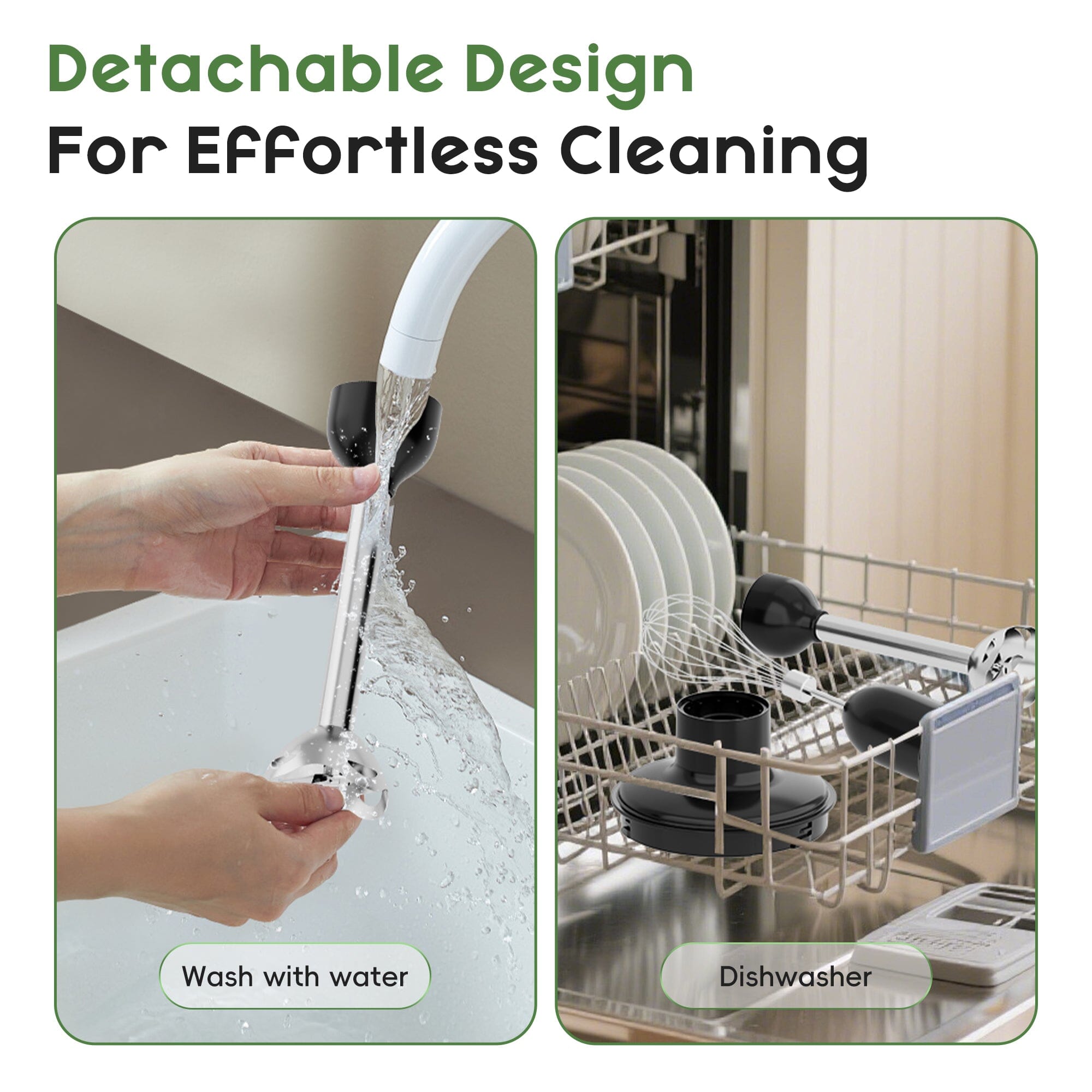- Compact and powerful handheld blender with a 150W motor for quick and efficient blending