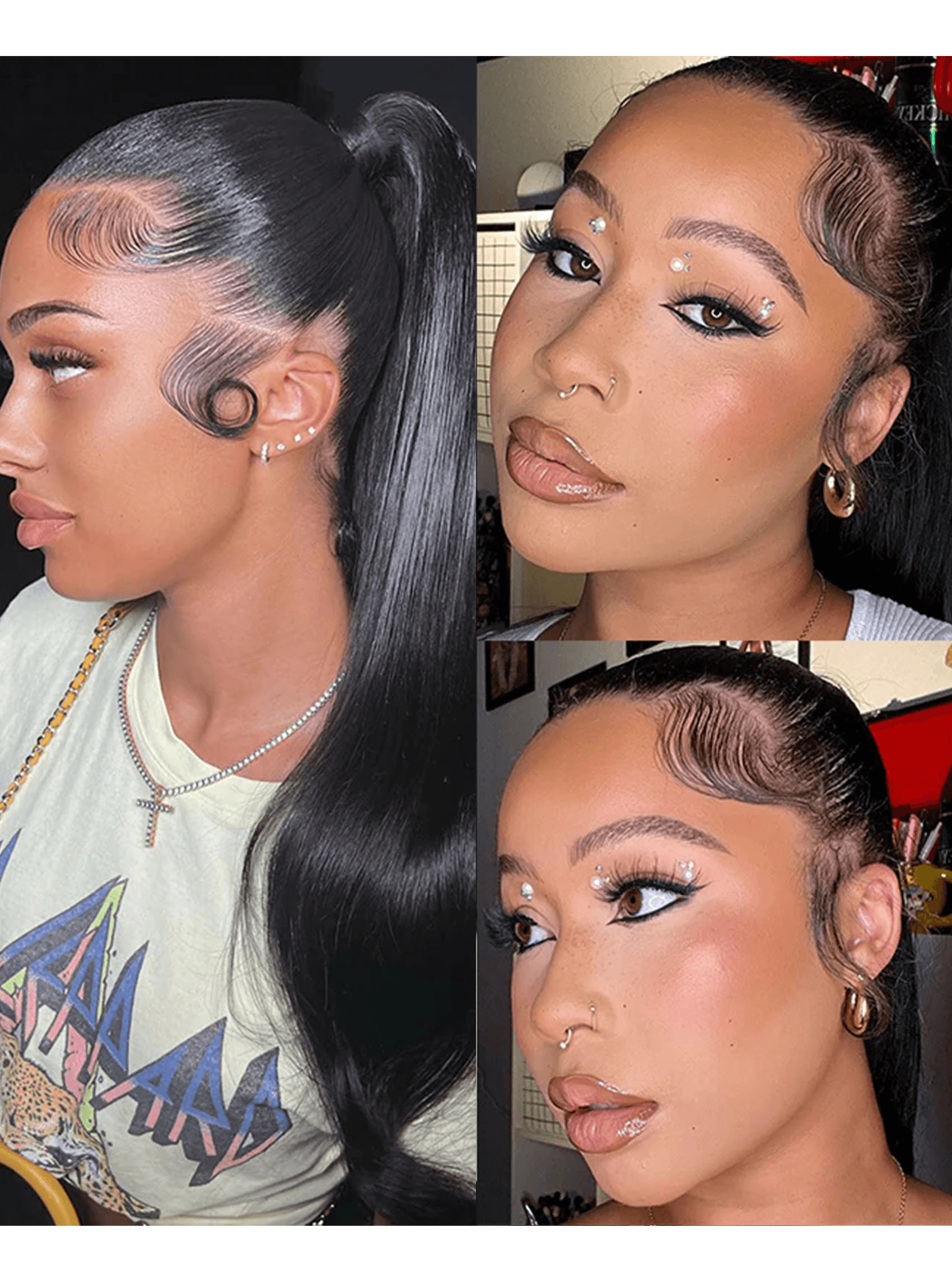 - Advantage: Don't need cut your own hair or cut your wigs to make baby hair.It is best choice for ponytail/braids/bun/headband wig style.