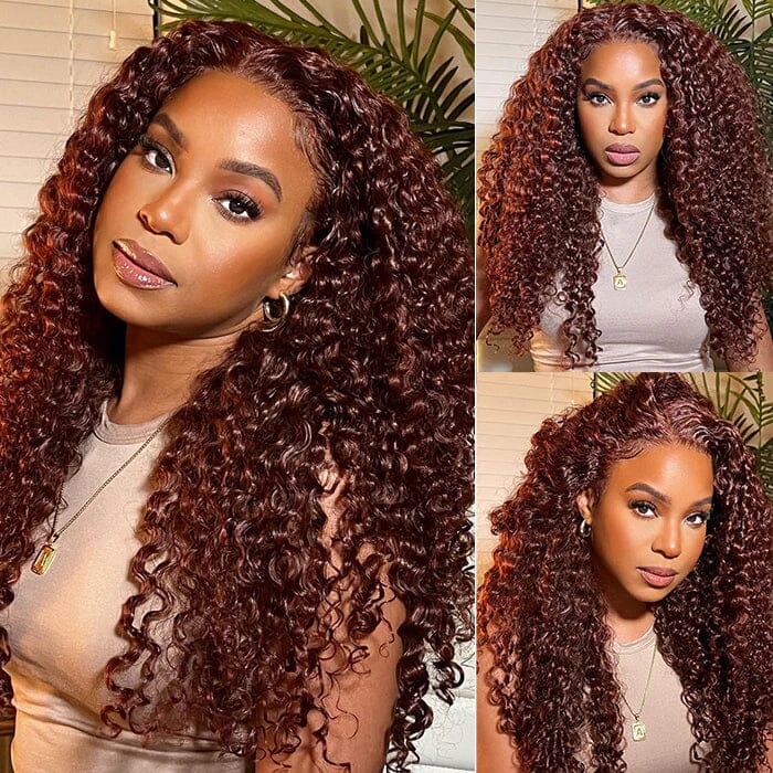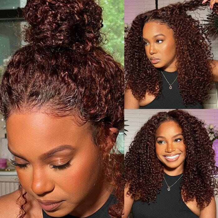 Reddish Brown Bouncy Curly Full Transparent Human Hair Lace Wig