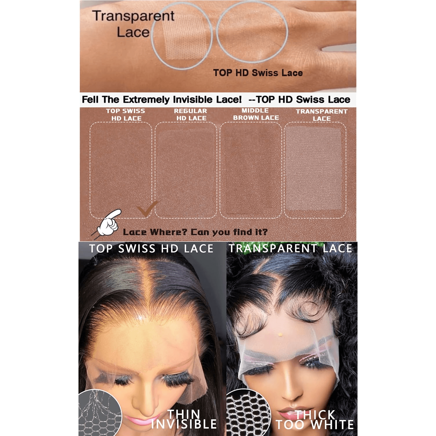 - NEW TOP Swiss HD Lace Wig: This invisible lace wig is thinner, softer, and lighter than transparent lace wigs. It is perfectly integrated into our skin while retaining flexibility. The edges are more invisible, more breathable, and not easily broken. Celebrity stylists adore this 360 HD Lace frontal human hair wig.
