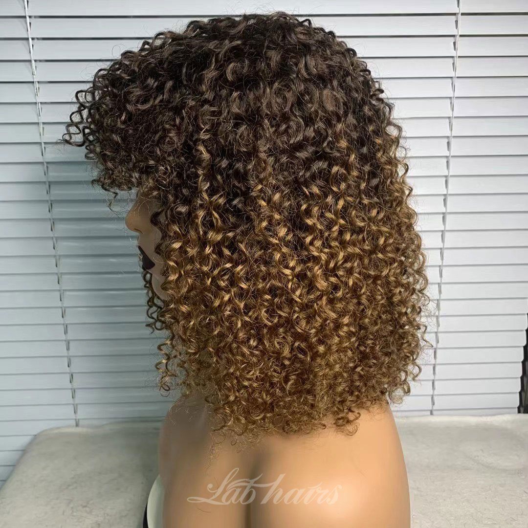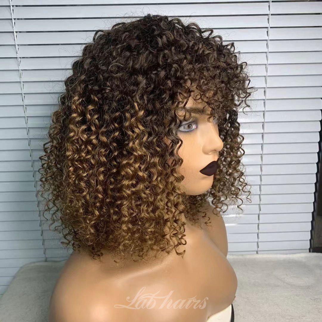 Ombre Copper Blonde Luscious Bubble Curly Bob Wig With Bangs