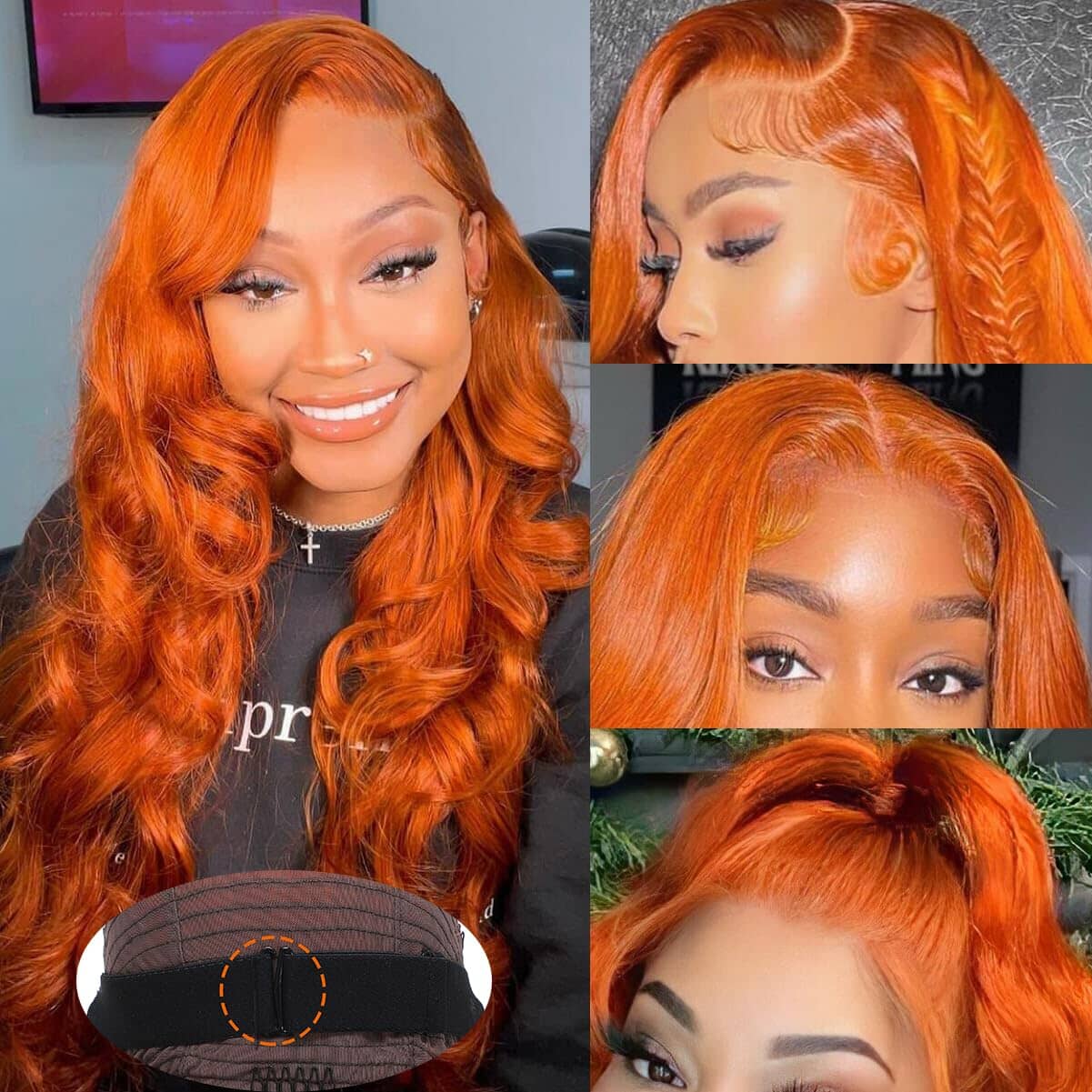 Ginger Orange 13*4 Transparent Lace 180% Density Straight Human Hair Wig