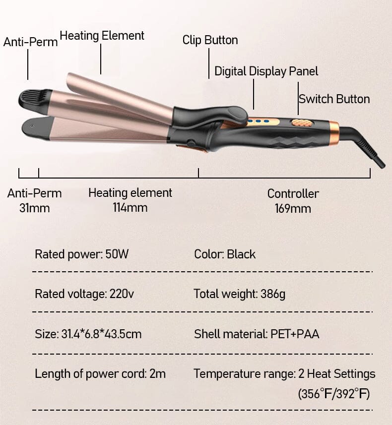 - [220V Worldwide Voltage] - Allows you to use the hair curler while traveling; power cord (2meter) give you freedom to adjust the hair curling iron, and comfortably style your hair at any angle.